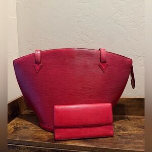 Louis Vuitton Red Epi Bag and matching Wallet