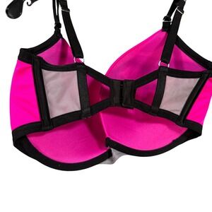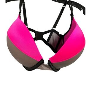 push up bra, Victoria's Secret, 32DDD, neon pink, gray, black, strappy, cage bra, very sexy, lingerie, uplifting, statement bra, designer, fashion