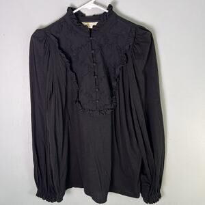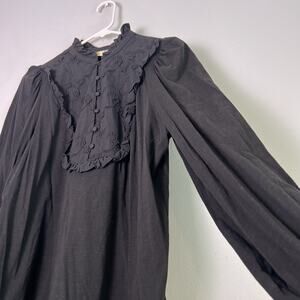 Boden Womes Sz 12 Black Ruffle Neck Blouse Y2K Vacation Gothic Witchy Embroidered Empire Vintage