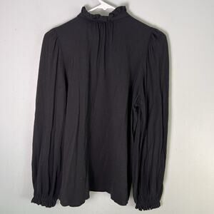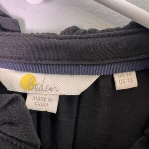 Boden Womes Sz 12 Black Ruffle Neck Blouse Y2K Vacation Gothic Witchy