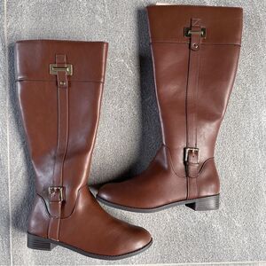 NIB Karen Scott Deliee2 Knee High Riding Boots Cognac Women's 7.5-Wide Wide Calf