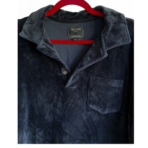 Todd Snyder Navy Blue Velour Long Sleeve Polo Shirt Size L