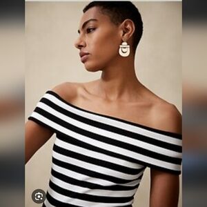 Banana Republic- Off The Shoulder Ripped Top- In Navy & White- Size L