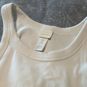 This classic ribbed white tank top is perfect for layering or wearing on its own. Its simple design offers versatility for any wardrobe.