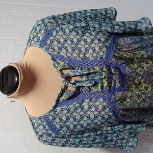 Olive Hill bohemian hippie boho blouse size small sheer material lightweight great for spring summer weather. Excellent pre-loved condition small