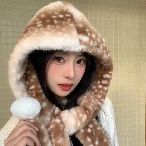 Cute faux fur fluffy soft bambi fawn sweet hoodie scarf