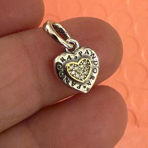 Charming Pandora heart pendant with silver and gold tones. Ideal for adding elegance to any necklace.