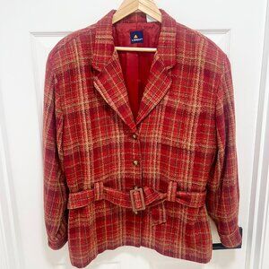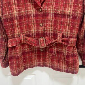 Lizsport Vintage 90s Plaid Belted Wool Blend Jacket Shoulder Pads