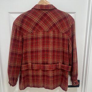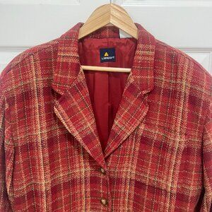 VINTAGE Lizsport 90s Plaid Belted Wool Blend Jacket Shoulder Pads Preppy Retro