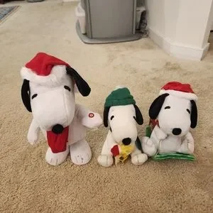 Set Of 3 Peanuts Snoopy Animated Christmas Holiday Plush. WORKS