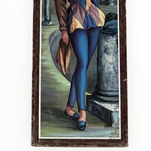 It is on a 1/2" thick composite board that measures 19.75 inches in height and nearly 8 inches in width, the postwar era piece is a part of American art history and is perfect for collectors of vintage art prints. The print also features embossed details, adding to its charm and character.