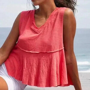 🆕Free People Bright Red Full Hearts Tank L 🆕