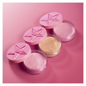 Elegant pink box with gold lettering for Magic Star setting powder.