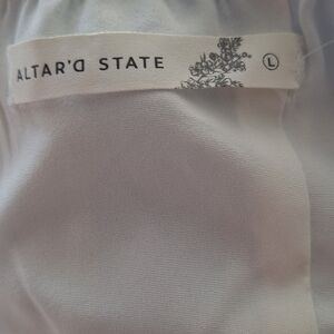 Light blue and white zip back corset top, with rubber lining inside. gently used, smoke free home, no visible flaws.