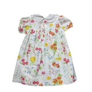 Vintage Girls Smocked Cherries White Floral Dress Peter Pan Sz 6x Easter Spring