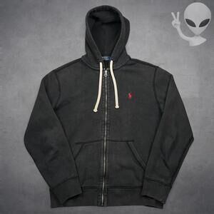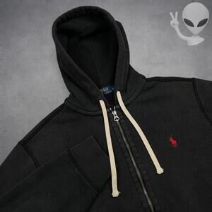 Polo Ralph Lauren Full Zip Hoodie Medium Black Fleece Classic Jacket Red Pony
