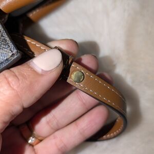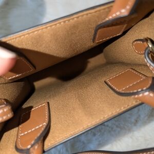 Iconic Celine structured tote featuring the all-over monogram canvas with bold white logo detail. Classic brown and tan combination with smooth leather top handles and detachable shoulder strap.