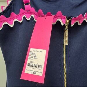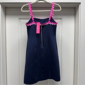 LILLY PULITZER SHELLBEE True Navy Blue Pink Ric Rac Scuba Lined Sz small Dress NWT