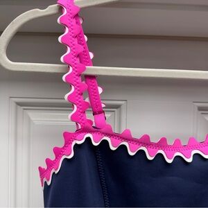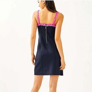 LILLY PULITZER SHELLBEE True Navy Blue Pink Ric Rac Scuba Lined Dress