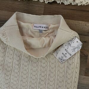 This chic cream knit skirt set offers a stylish and comfortable fit. Perfect for any occasion, pair it with your favorite accessories for a complete look.