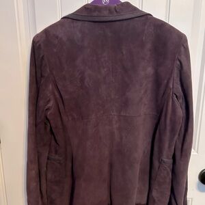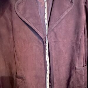 NWT Jones NY suede purple jacket features clip at the breast, two side pockets, and original tags.