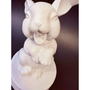 Vintage Porcelain White Rabbit Rotating Music Box Easter Decor