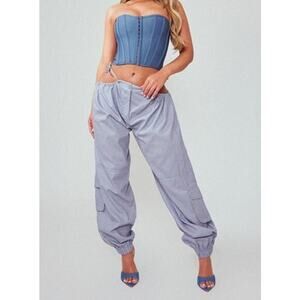 NEW PrettyLittleThing Cargo Joggers Size 0 Cut Out Gray Low Rise Baggy Casual