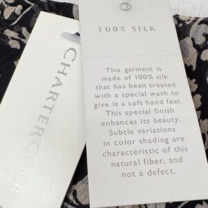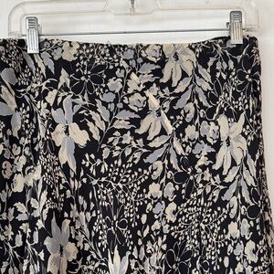 Charter Club Asymmetrical Silk Midi Skirt in Black, Cream & Blue Floral Design.