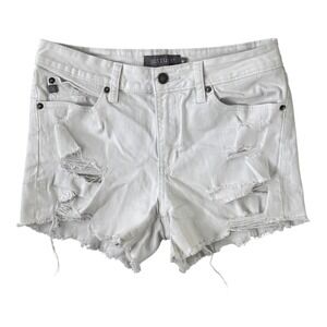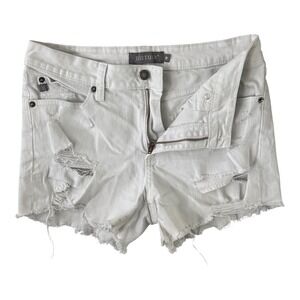JUSTUSA Womens White Distressed Denim Jean Shorts Raw Hem Size Medium 28