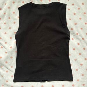 Stylish black tank top with button-front design. Ideal for layering or wearing alone.