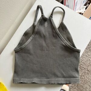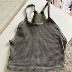 Chic gray olive ribbed crop top. Ideal for active or casual wear. Soft and comfortable fit.