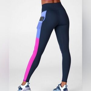 Fabletics Blue Color Block Pink Purple PowerHold Leggings Size 2X Phone Pockets