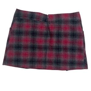 Stylish mini skirt with a classic plaid pattern. Features a blend of red and black colors, black lining, and front pockets.