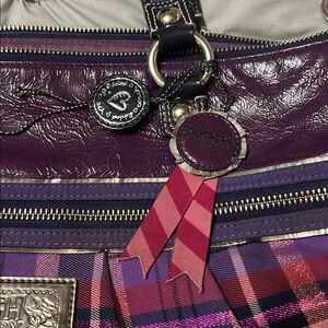 Coach Poppy classic tan and purple tartan large tote (lot of 2, not separating)