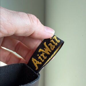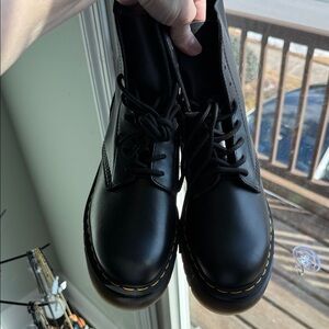 Classic black leather boots featuring bold yellow accents. Iconic style and comfort. Brand new, tried them on once at home didn’t like the way they looked on me. Pet friendly, non-smoking home.