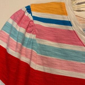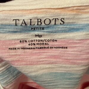 Talbots Petite- Ruched Shoulder Sleeve Multicolor Striped Crew Neck Tee Size MP