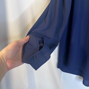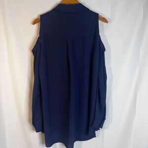 Pleione Navy Dressy Blouse Long Sleeve Cut Out Shoulder Button Front Size MD****