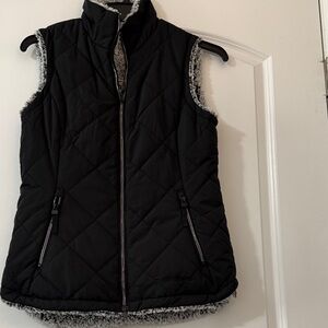 Quilted design with cozy fleece lining. Features zip pockets. Ideal for layering.