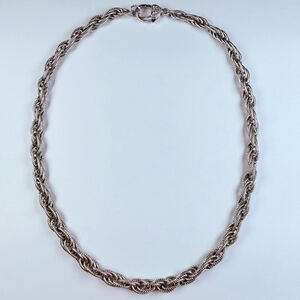 A designer Judith Ripka masterful blend of sparkling sophistication and modern design. Each segment is made of a combination of 5 twisted links catch the light at every angle creating a very modern contemporary interpretation of the rope design. The infamous Judith Ripka heart lobster clasp is adorned with three brilliant cubic zirconia CZ gemstones with a total weight of .22 carats shimmering like diamonds. Each link is made up of a rope design with textured and the entire necklace is crafted of solid 925 sterling silver exuding refined artistry and enduring quality. Necklace is 7MM wide, perfect to wear all on its own, layered or with your favorite Judith Ripka Enhancer Pendant.