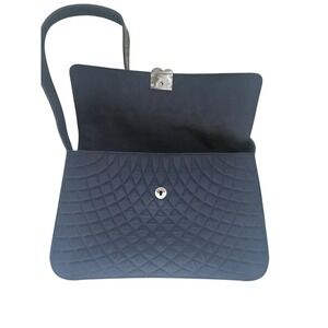 Vintage Bally Luxurious Designer Navy Blue Quilted Nylon Shoulder Bag – Elegant