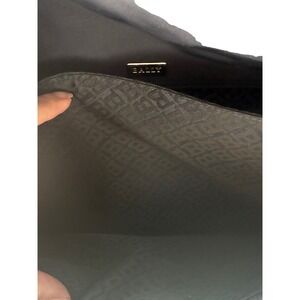 • Interior: Spacious main compartment lined in signature Bally jacquard fabric (repeating "Bally" pattern in gray/black tones), zippered pocket for essentials
