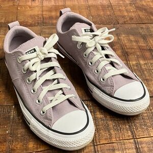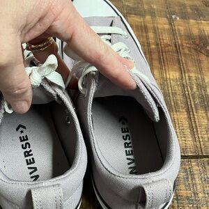 Chic pastel purple sneakers by Converse. Features white laces and durable rubber soles. Only worn a few times.