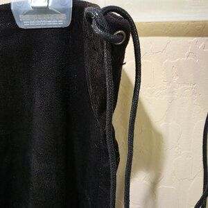 Black faux suede with a partial side zipper at the ankle for easy on and off and an adjustable drawstring tie at the top opening.