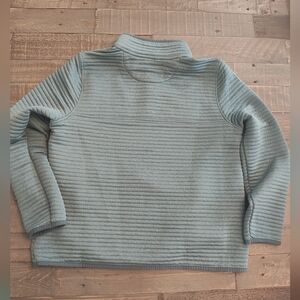 Cozy and stylish button up pullover. Great condition. Features ribbed texture and button collar. Ideal for cool weather. LL Bean size L Petite. 14 inch pit to waist.