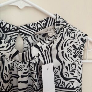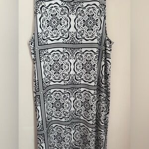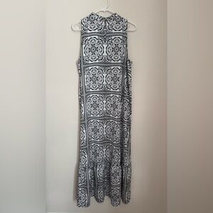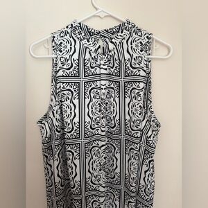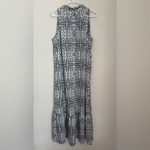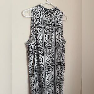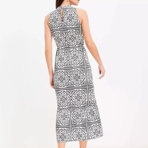 NWT LOFT sleeveless midi dress in a women’s size XL. Features a beautiful black and white tile-inspired print with a high neckline, and a keyhole back with button closure. All original tags are still attached. Dress originally came with a small belt that could be tied in the back, front, or be removed- please note that belt is not included. Fast shipping!