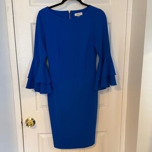Elegant long sleeve dress with ruffle cuffs. Perfect for formal occasions.