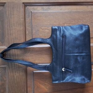 This stylish black leather tote bag is A CHILD 'S purse! Its sleek design and durable material make it a must-have children's accessory. Purchased it thinking it was an adult size purse, but it is small.