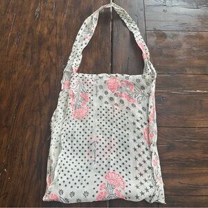 Free People Gauzy Floral Cotton Market Tote Bag Pink Black