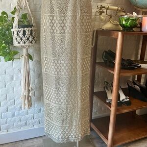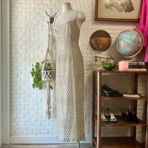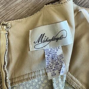 Vintage 90s Y2K Michelangelo Rhinestone Spaghetti Strap Gold Crochet Sequin Gown, Made in USA, Tag Size 9/10