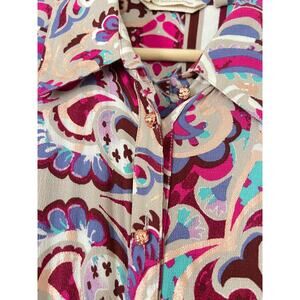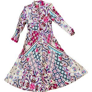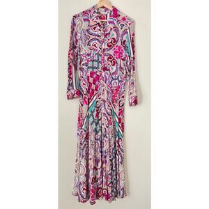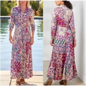 Soft Surroundings Palmero Maxi Dress Floral Fuschia Soho Shirtdress Pink Gold PS